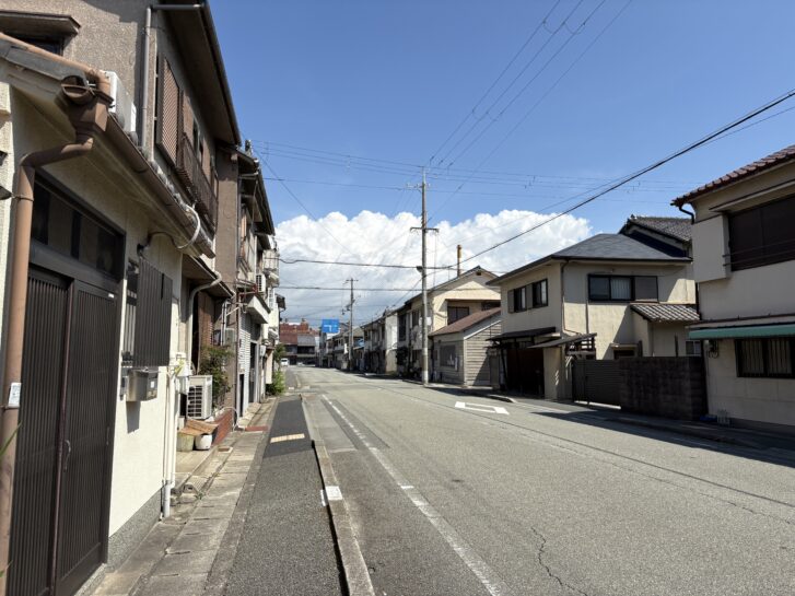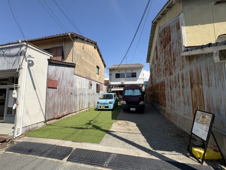 古い町並み、路地を進んだ場所、道路から少し入ったところにお店があります。