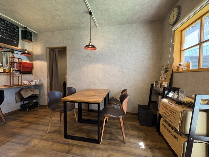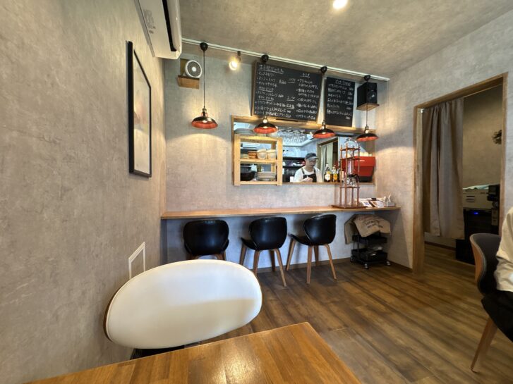 店内はコンパクトでグレーに木目の床で落ち着く雰囲気です。