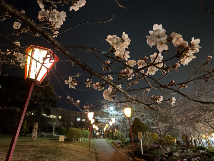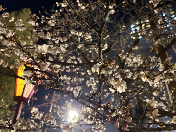 ぼんぼりと桜の幻想的な風景が広がっていました!