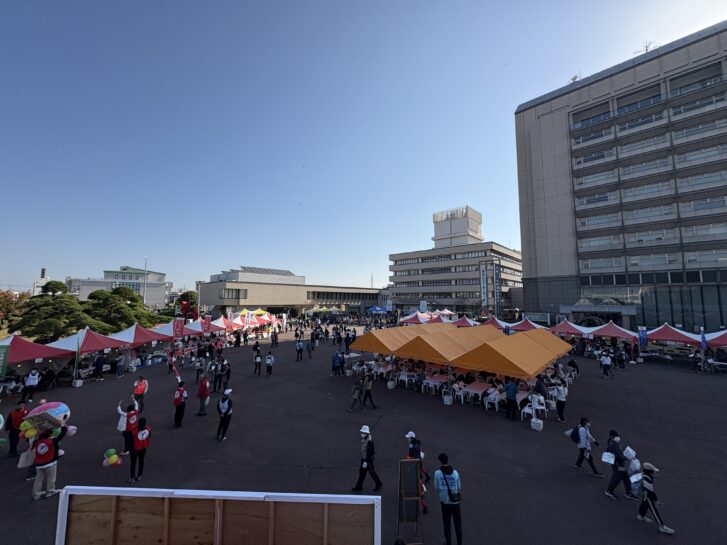 加古川ツーデーマーチの会場は加古川市役所前の広場。