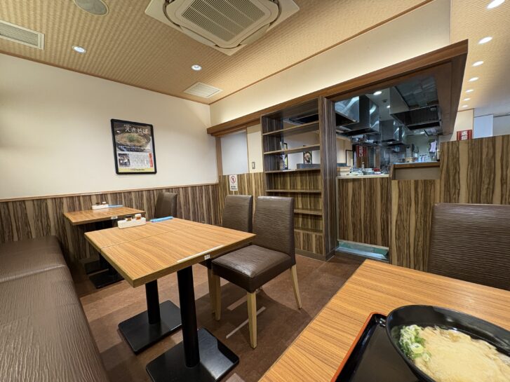 清潔で快適な店内。開放的で広々として、カウンター席とテーブル席があります。