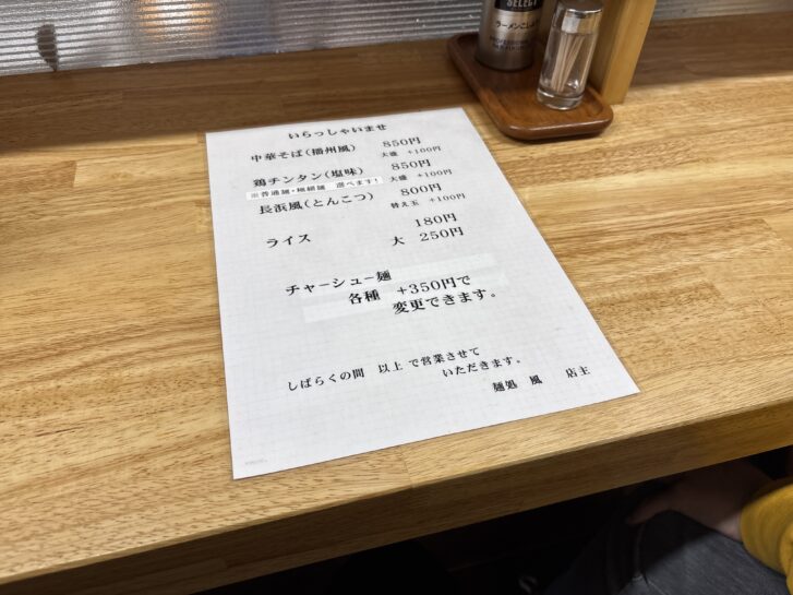 麺処風さんは以前は志方町で営業されていたお店で、最近移転して再オープン(※麺処風さん再オープンの記事はこちらをご覧ください。)されました。