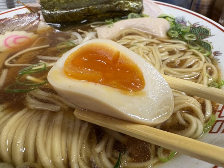 味のよく染みた煮卵。とろ~り半熟加減がそそります。