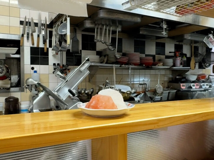 テーブルには岩塩?白とピンクの岩塩が置いてありました。塩スープに使われているものでしょうか?気になりますね。