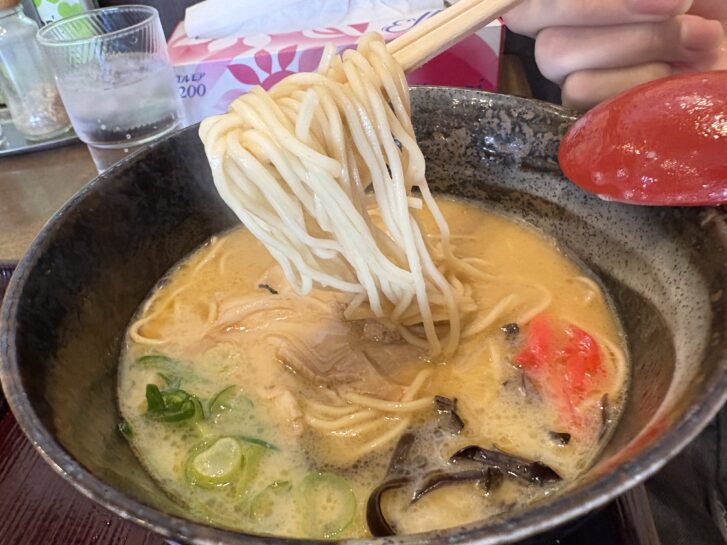 濃厚クリーミィな豚骨スープと、食感のいい極細麺が食べ始めるととまらん!