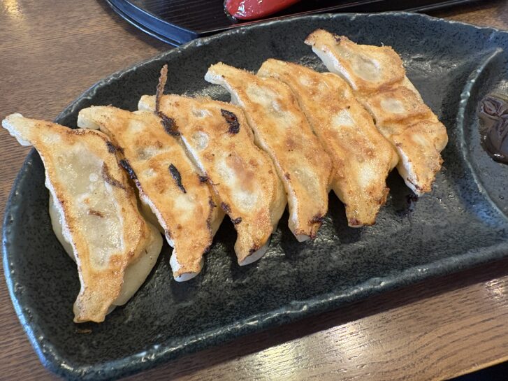 甘い肉の旨味が口いっぱいに広がる!イベリコ豚の焼き餃子!(420円)ビール欲しくなるやんか!