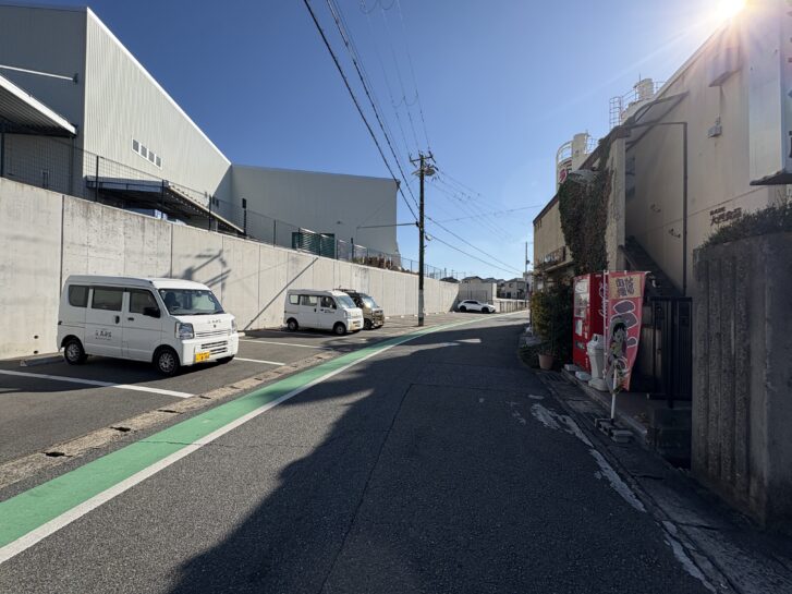 店舗前にはお店の駐車場が完備。営業5分前に到着するとすでに4台ほどの車がオープン待機していました。