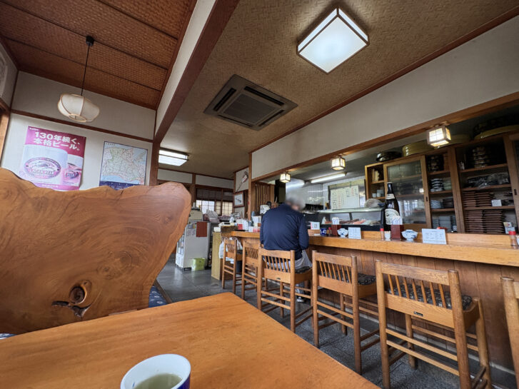 常連さんで賑わう店内。テーブル席にカウンター席がありました。お一人さんでも気兼ねなく入れるお店です。