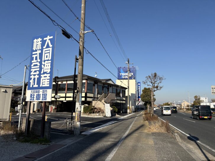 店舗前はらーめん八角 播磨本店さん、大同海産さん。