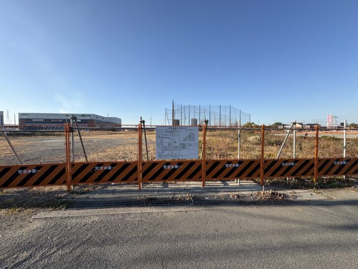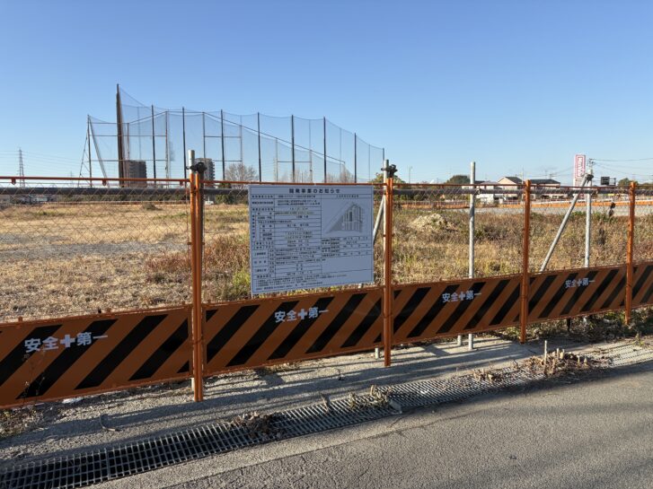 現場は周囲がフェンスで覆われ、工事の告知看板がありました。