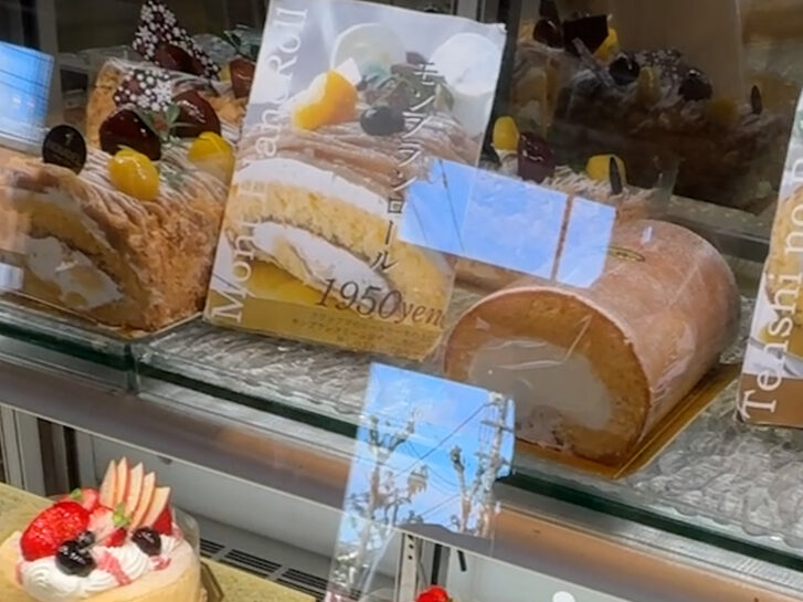 このロールケーキ、モンブランロールも美味しそう!クリームたっぷりでそそられる。