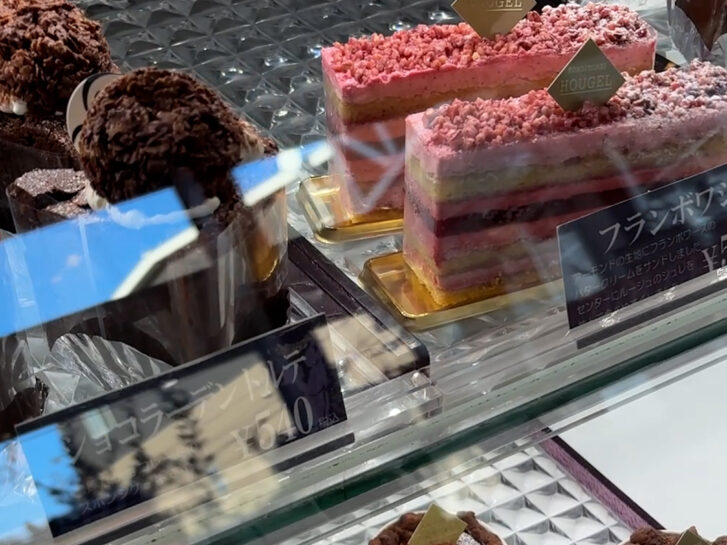 店内には人気スイーツを求めるお客さんでいっぱい!スイーツのショーケースには、色とりどりなスイーツがずらりと並び、どれも~おいしそう!